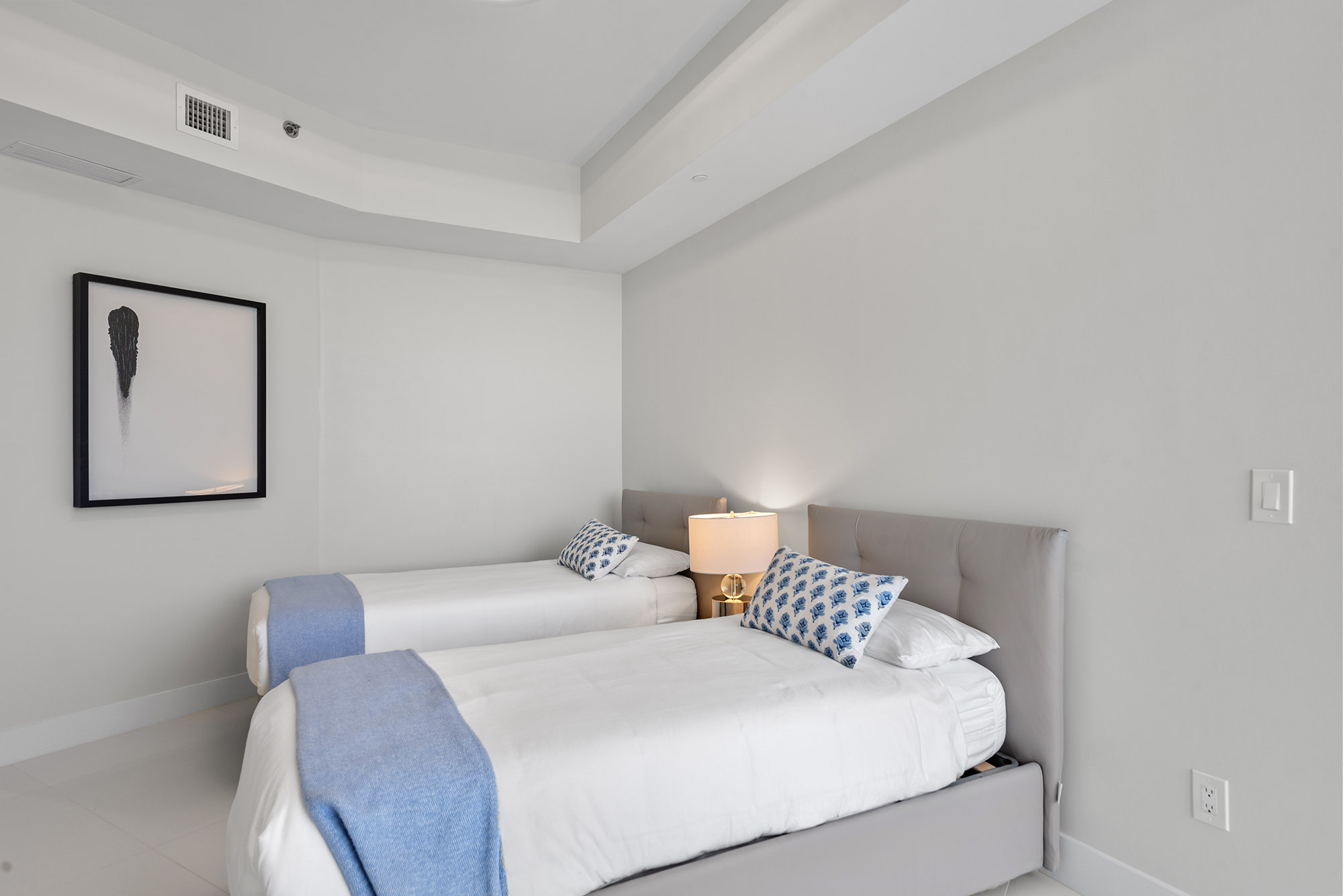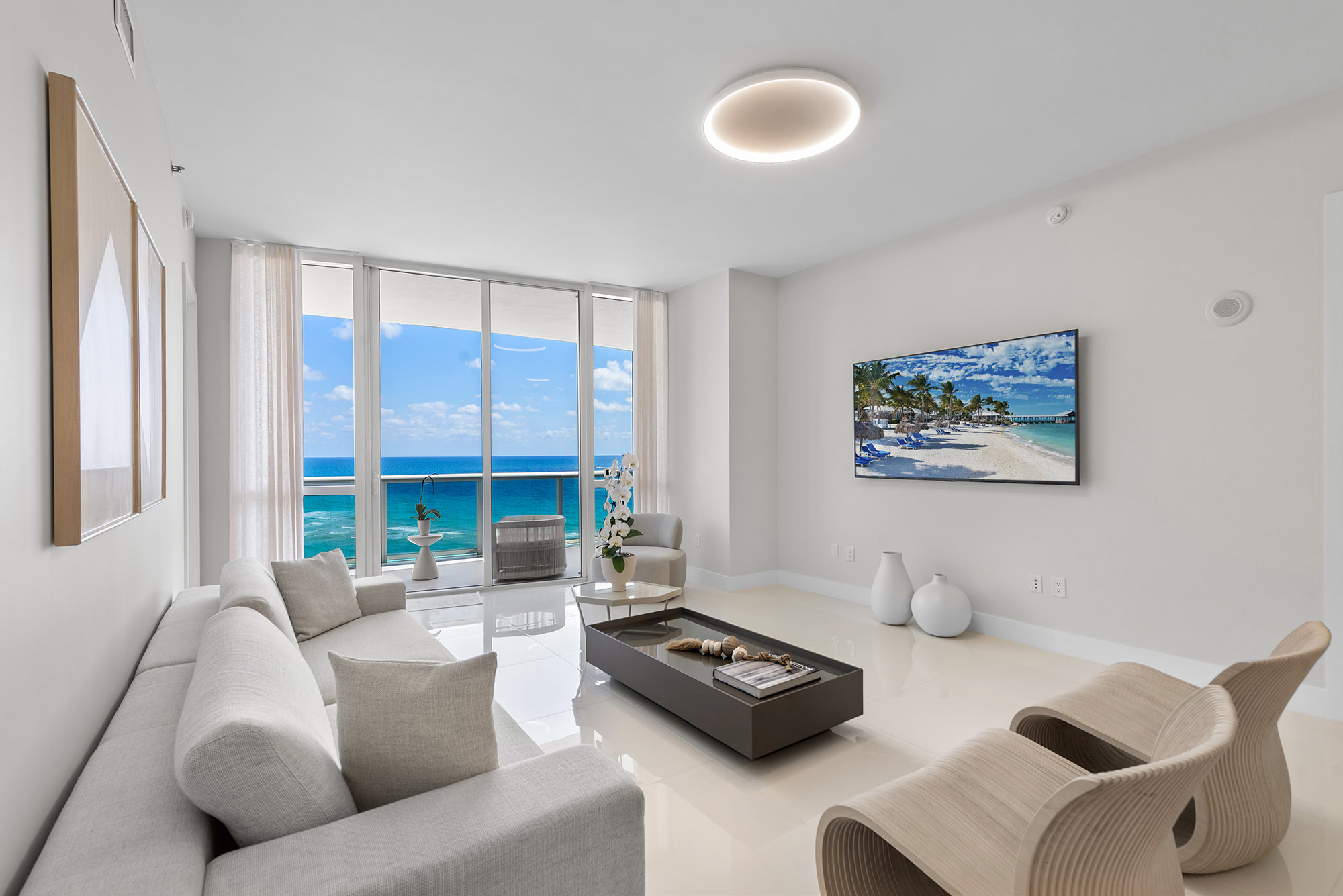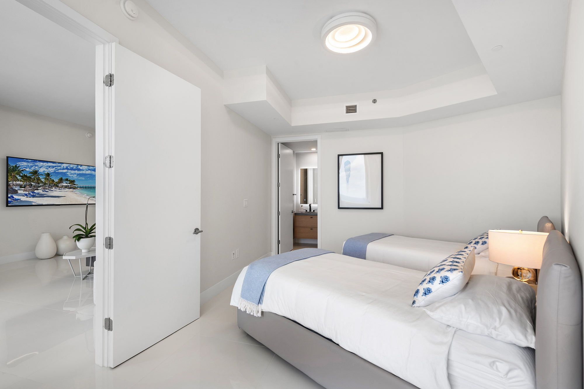 This stunning ocean view unit features 2 bedrooms and a den that has been turned into a bedroom, equipped with a sofa bed with access to its personal bathroom, and 3 bathrooms. It offers floor-to-ceiling windows, two custom-made walk-in closets, and 10-foot ceilings for an open, luxurious feel. The kitchen is equipped with Italian cabinetry, Sub-Zero and Wolf appliances, and granite countertops. Modern, beautifully designed bathrooms and an in-unit washer and dryer add convenience. Residents enjoy a state-of-the-art health club, fitness center, heated infinity pools, conference room, and more. Located close to Bal Harbor Shops and excellent restaurants, this unit is exquisitely furnished and perfect for luxury living.